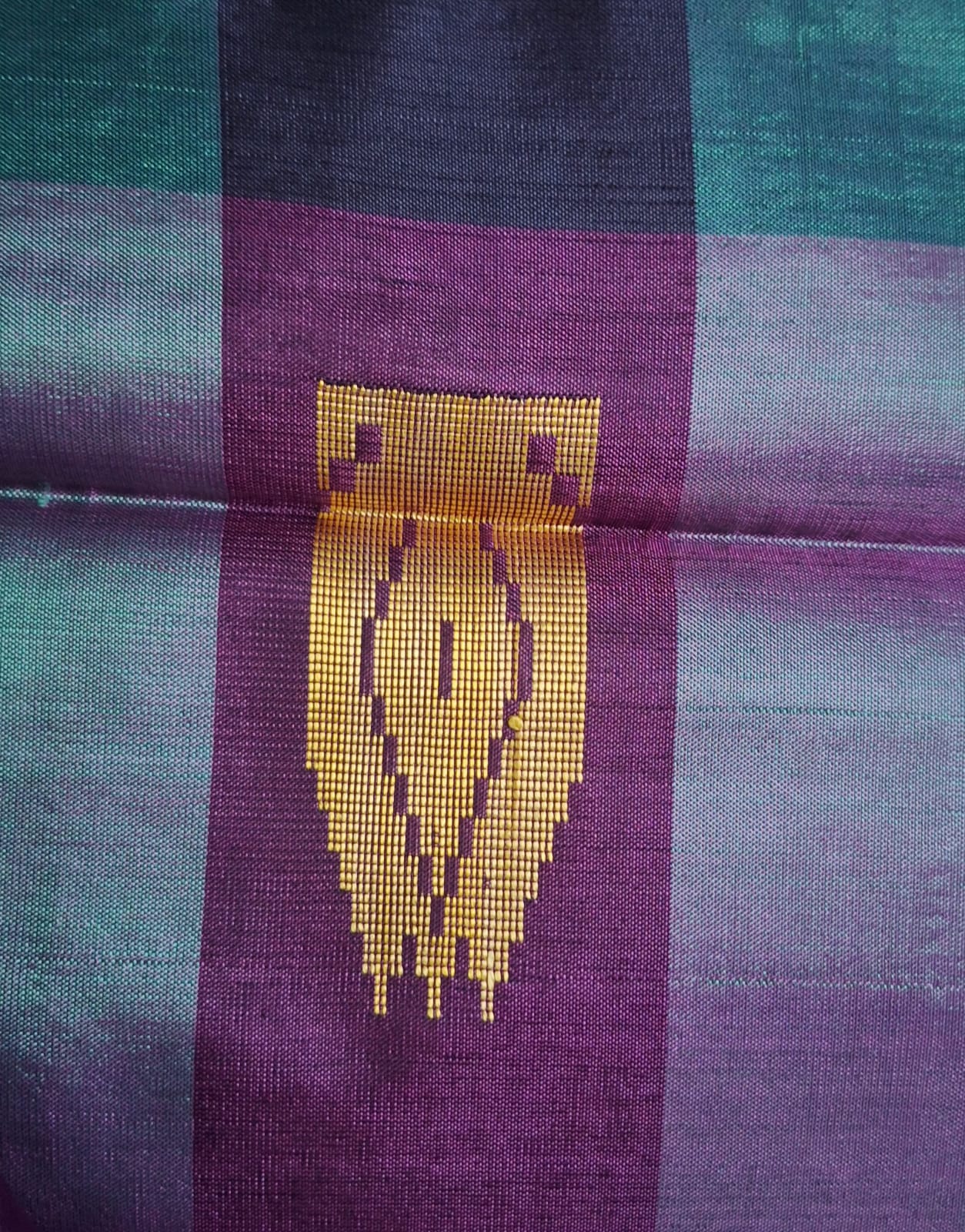 Vazhai Naar Pattu Saree – Purple Body With Blue Contrast Pallu Soft Silk, Traditional Zari Motifs